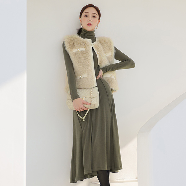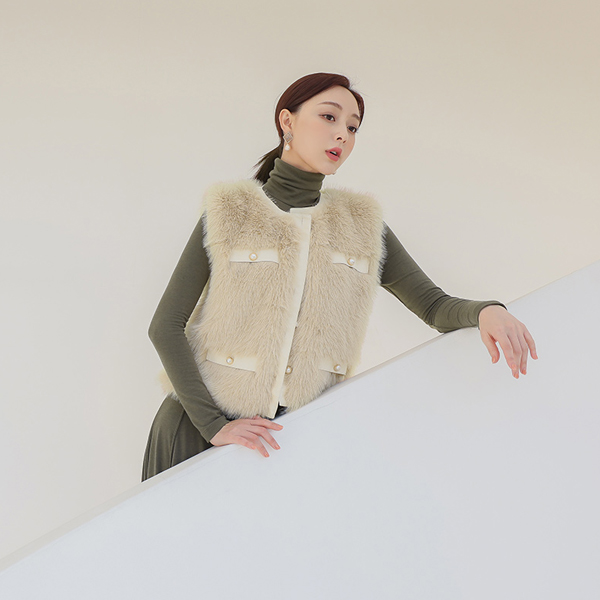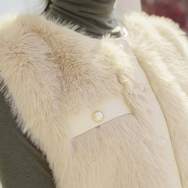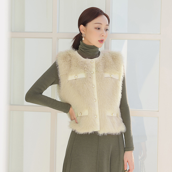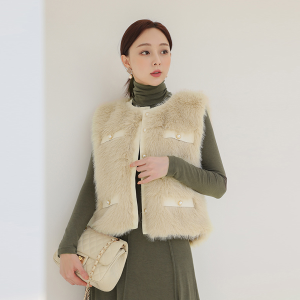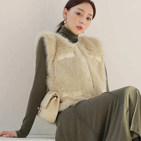 レザー トリミング 真珠 エコファー ベスト