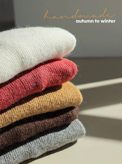 ぽかぽかした ハンドメード ボートネック ウール はち ニット