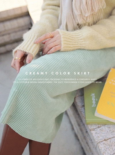 クリーミー カラー コーデュロイ バンディング 弾力 スカート