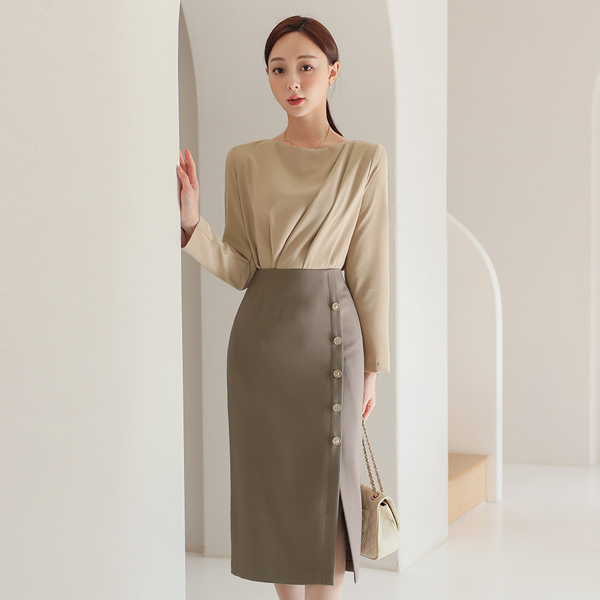 ショルダーパッド ドレープ シャーリング ブラウス