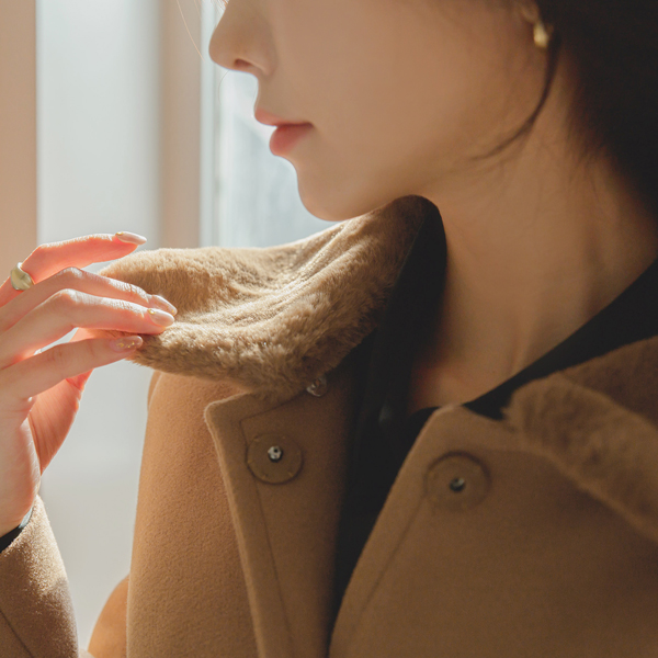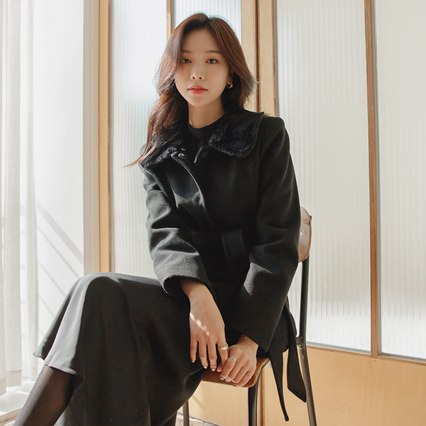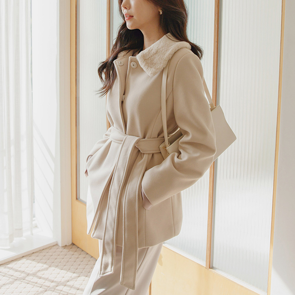 ラグジュアリー フェイクファー カラー ベルティード ハーフ ウール コート