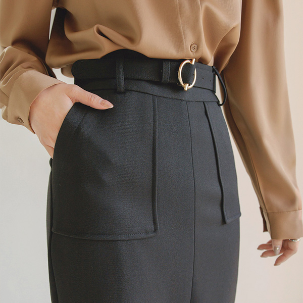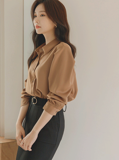 グロッシー サテン ショルダー ピンタック シングルカラー ブラウス