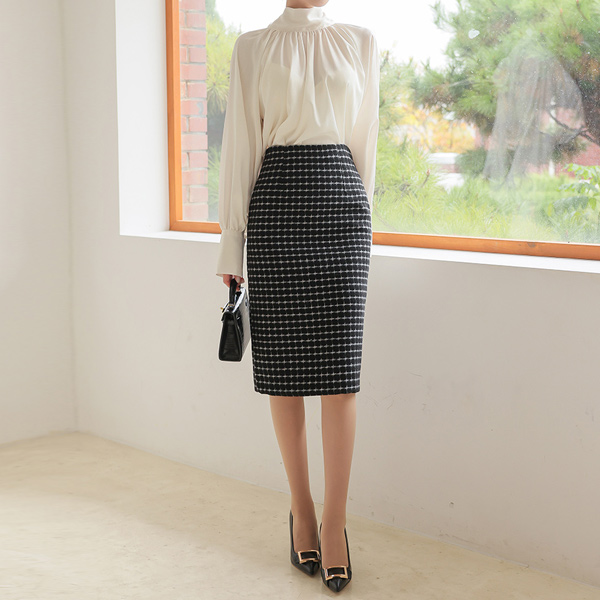 雪 チェック 真珠ボタン スクエアネック ウール ジャケット
