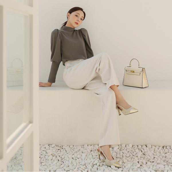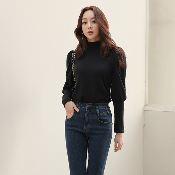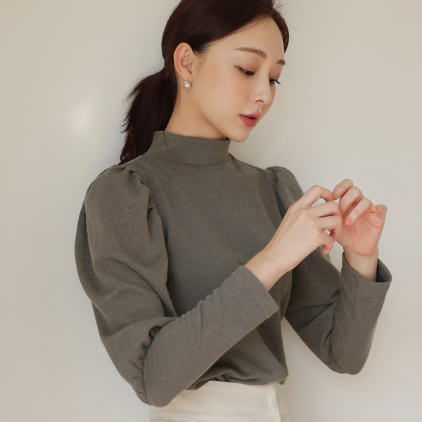メタリック ハーフネック グラム パフ袖 ティーシャツ