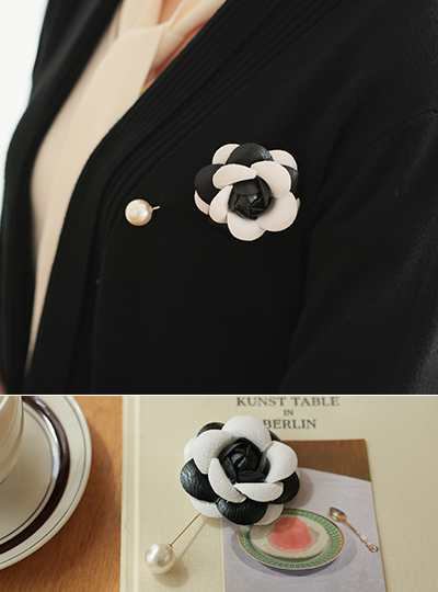 Coco ブラックアンドホワイト ローズ 真珠ボール ブローチ