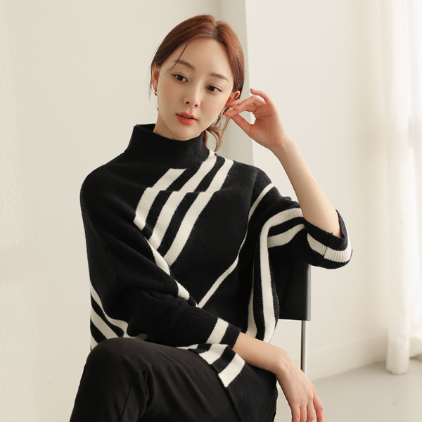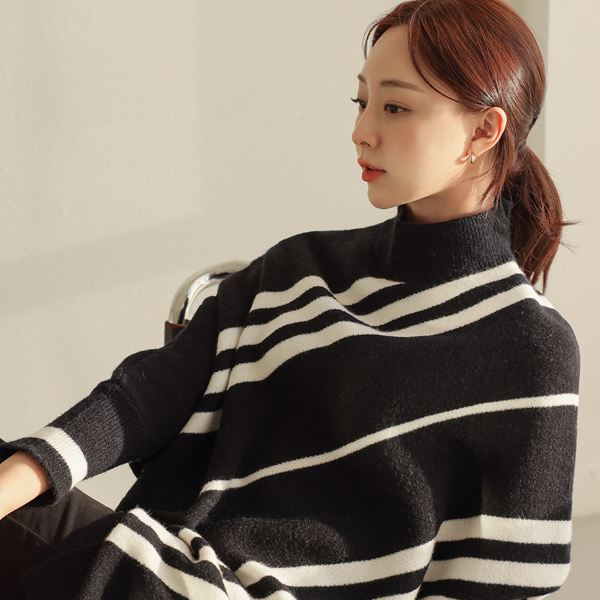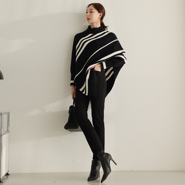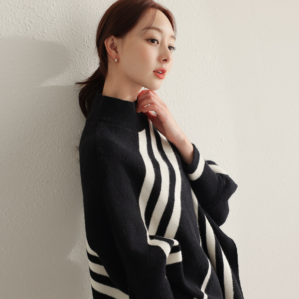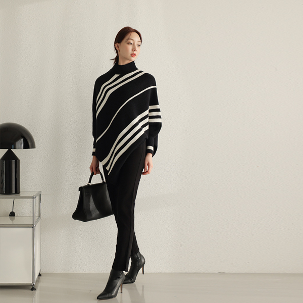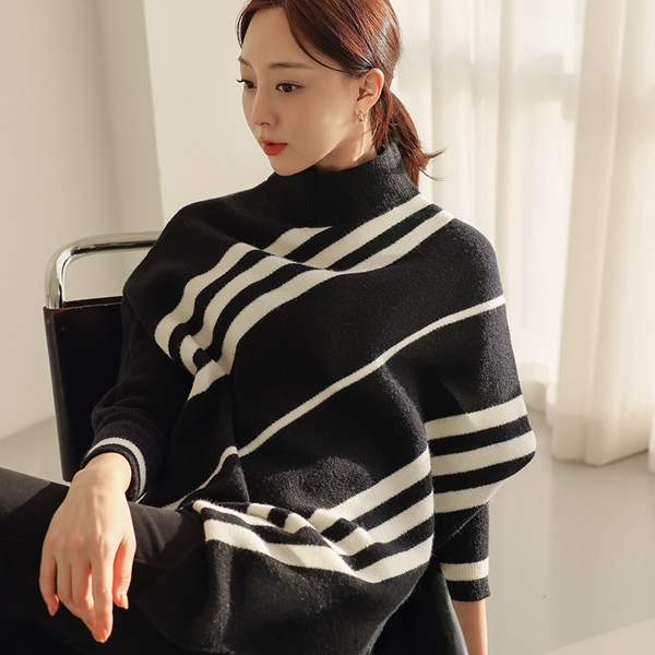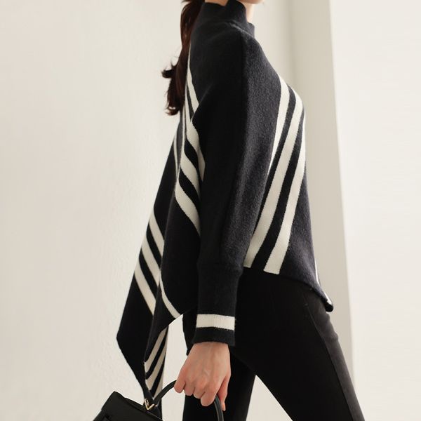 斜線 ストライプ ケープ とっくりえり ニットティーシャツ