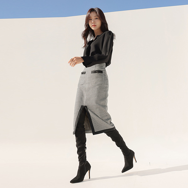 アンデイーグ シェパード チェック テーピング スカート