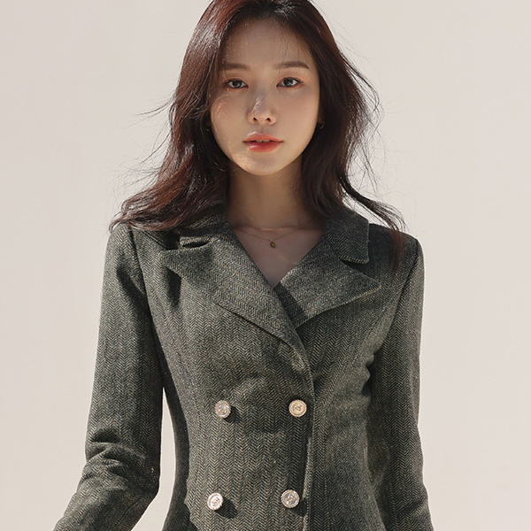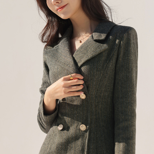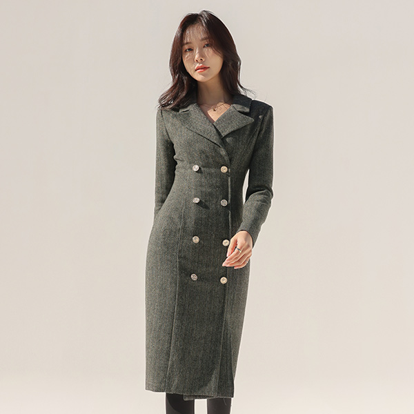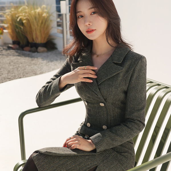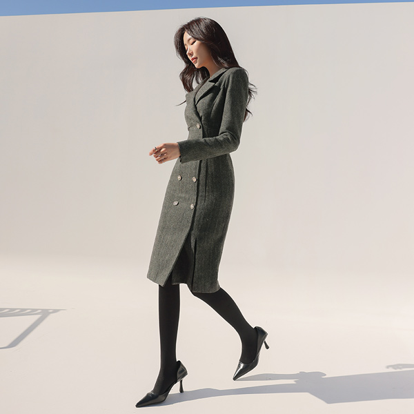 ヘリンボーン ファブリック ラグジュアリー ムード ウール ワンピース