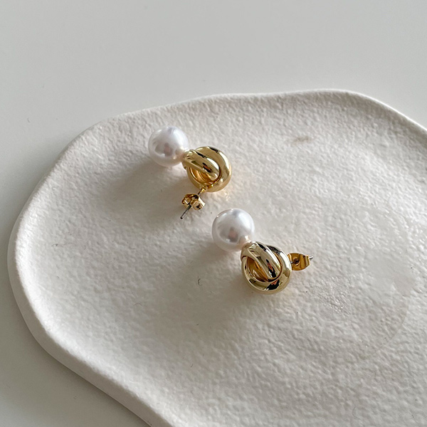 ゴールド サークル ドロップ真珠 イヤリング