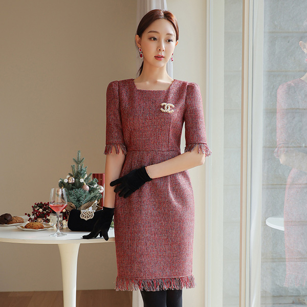 ラブリー タッセル ツイード ワンピース
