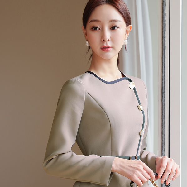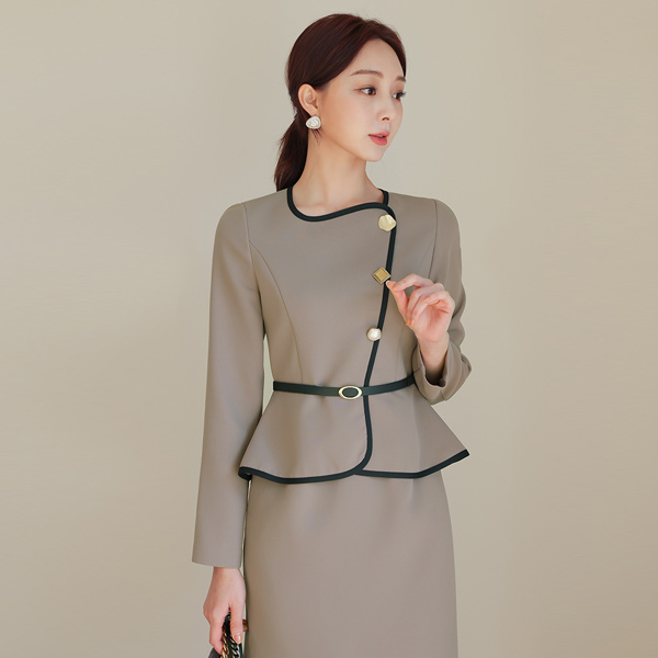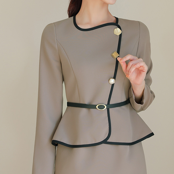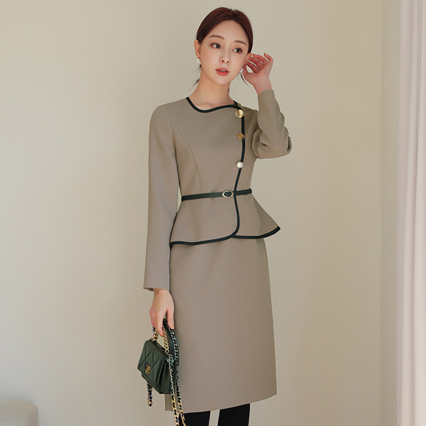 配色 バイアス ベルティード ペプラム ワンピース