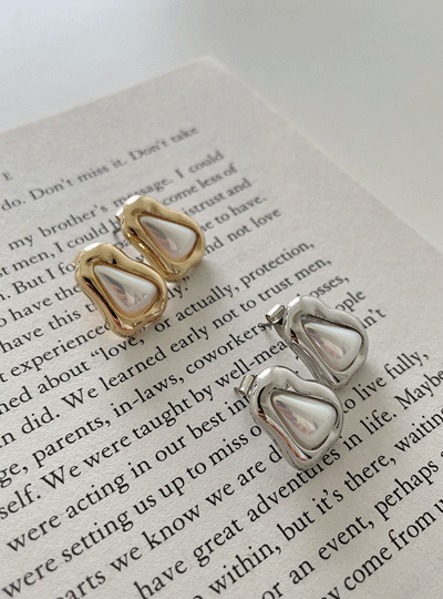 Silver&ゴールド ウエーブ 真珠 イヤリング
