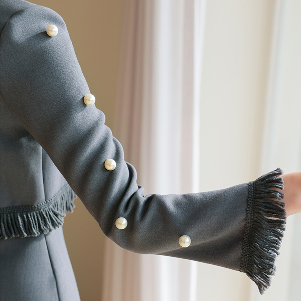 サイド 真珠装飾 フリンジ ワンピース