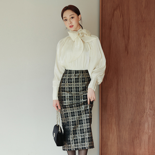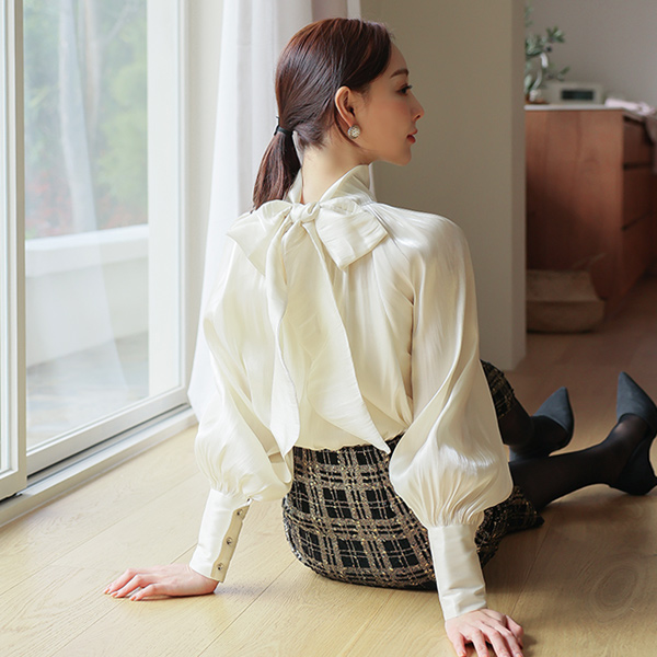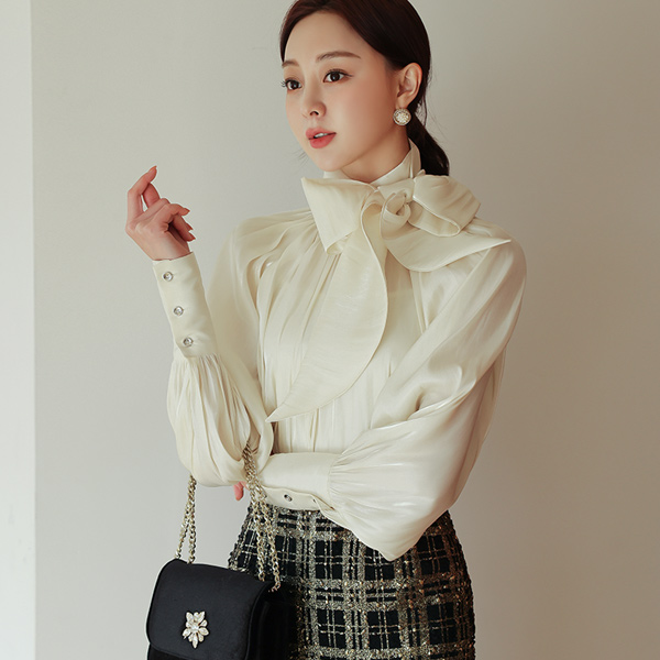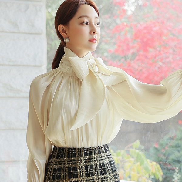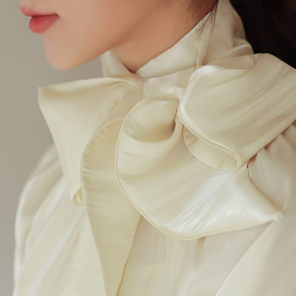 グロッシー サテン ツーウエー スカーフネック ブラウス