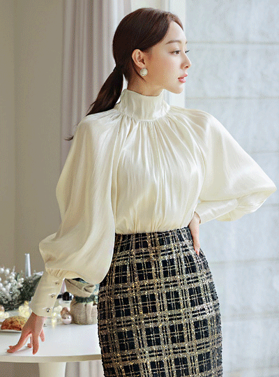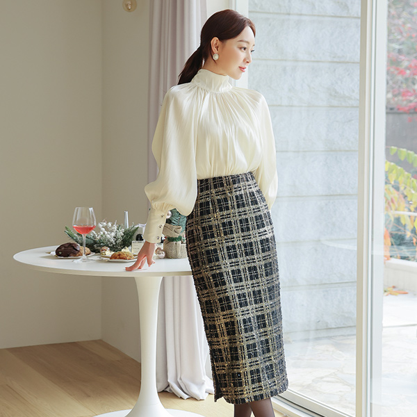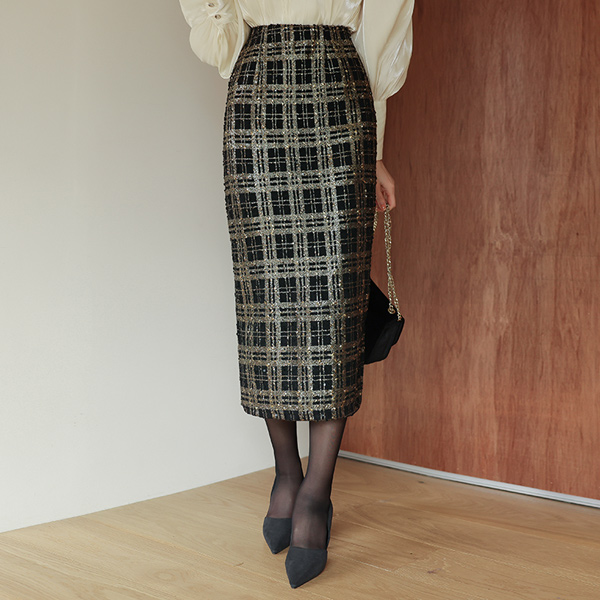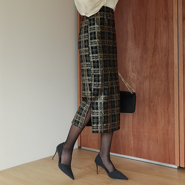 Merry パール チェック バンディング スカート