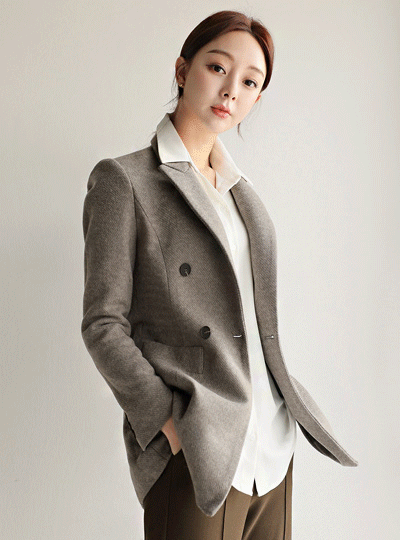 ダブルボタン ウール ハーフ コート(キルティング裏地)
