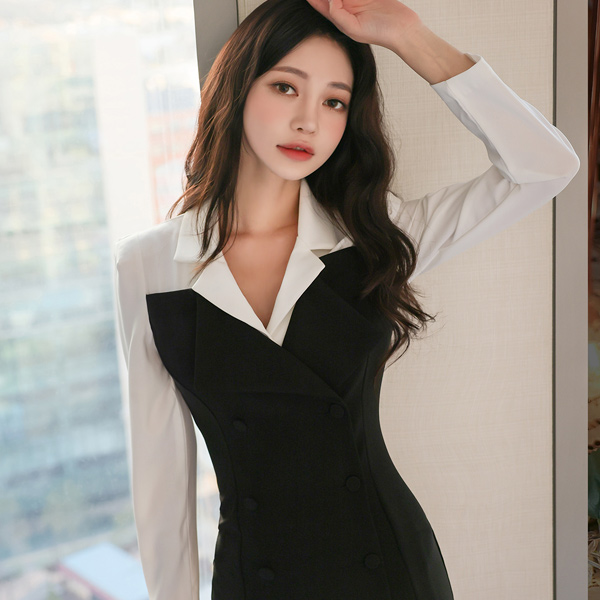 襟シャツ ビュスチエ レイヤード ダブルボタン ワンピース