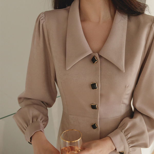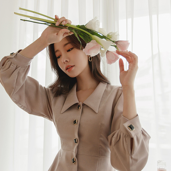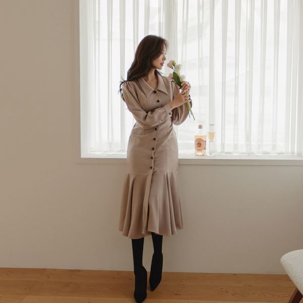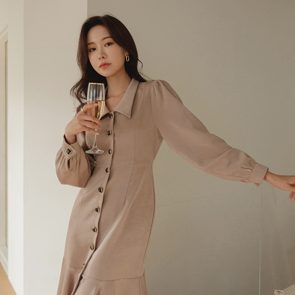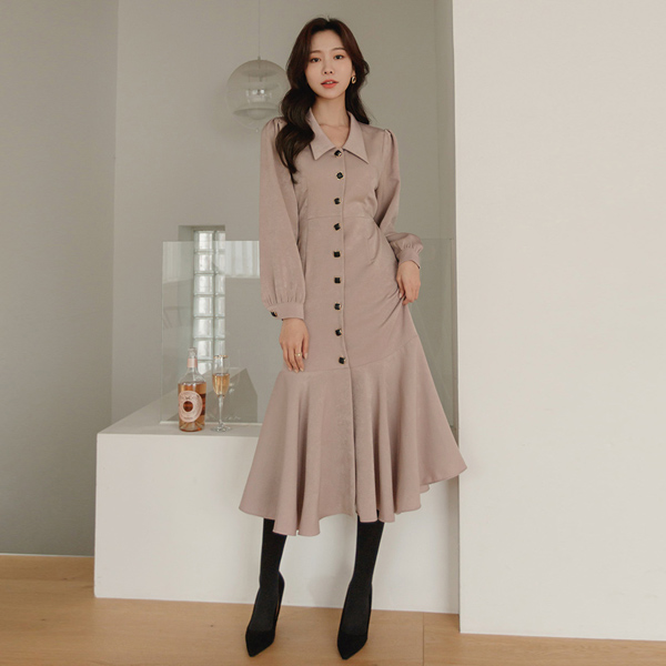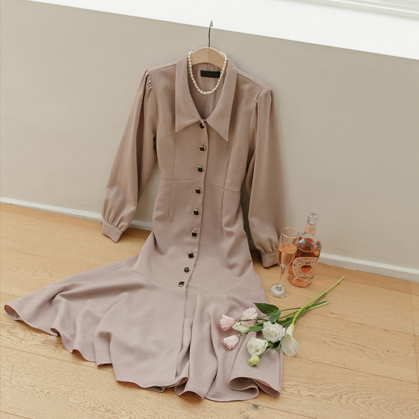 ロマンチック ジュエリーボタン ベルティード フレア ロングワンピース