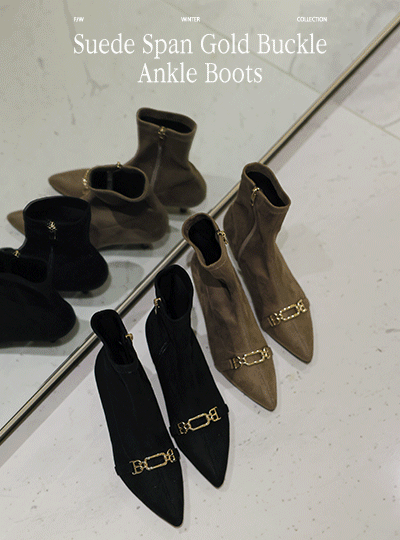 スエード 弾力 ゴールド バックル アンクルブーツ