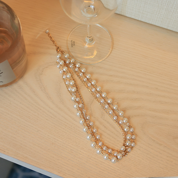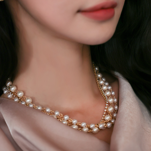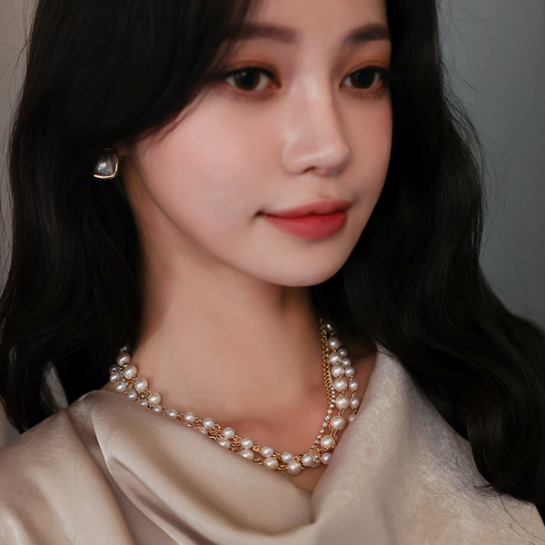 キュービック&真珠 レイヤード ネックレス