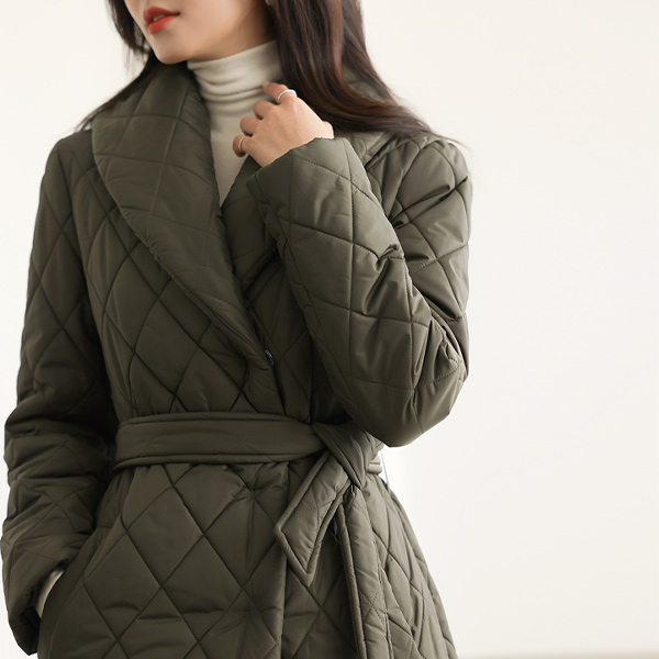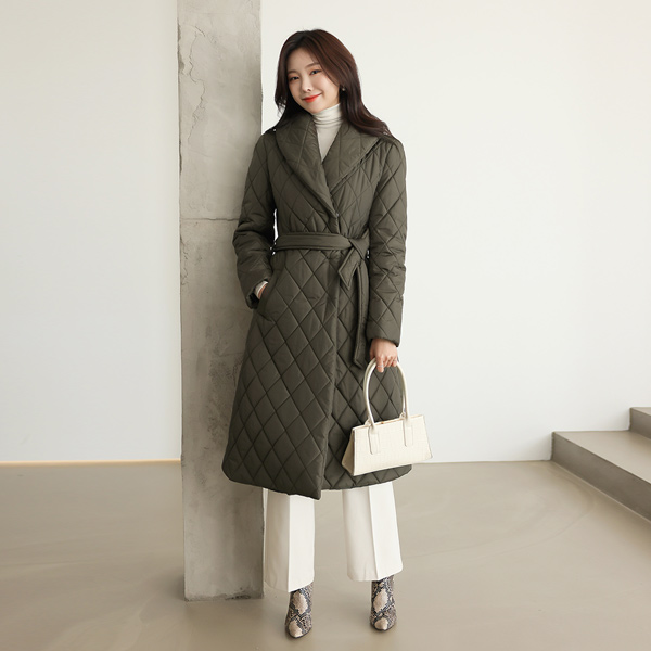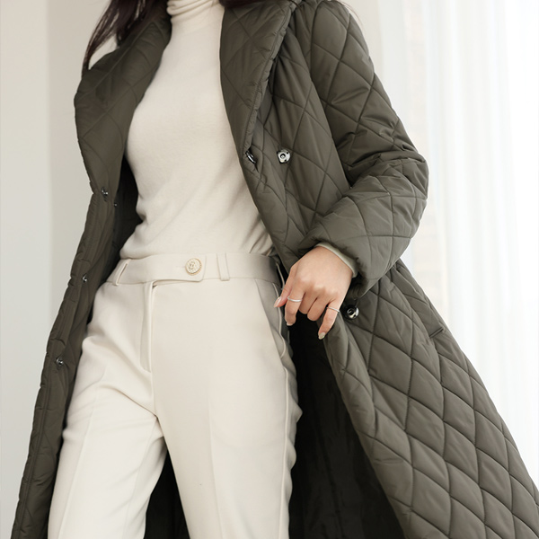 ラウンド カラー 隠れた スナップボタン キルティング ロングなダウンコート(4オンス)