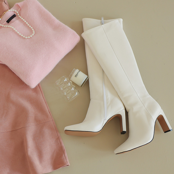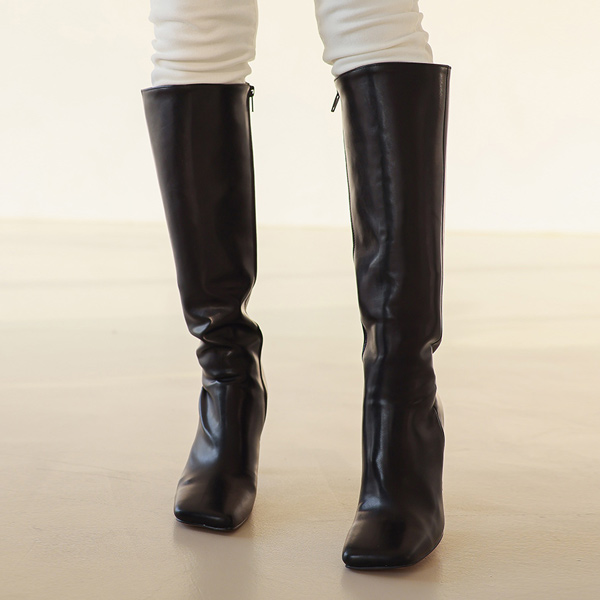 スクエア シェイプ レザー ロング ブーツ