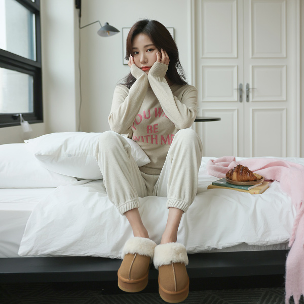 ぽかぽかした ファー バンディング カーフスキン アグ スリッパ