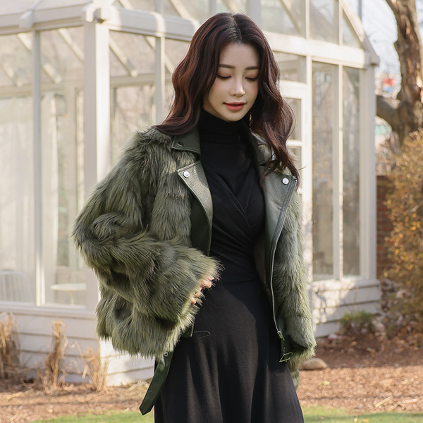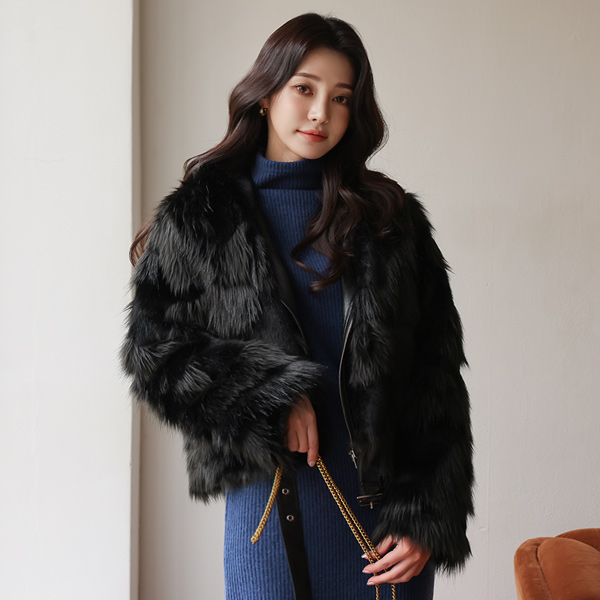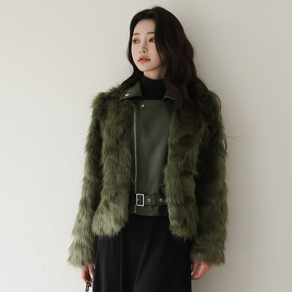レザー·カラー レイヤード ファー ライダー ジャケット