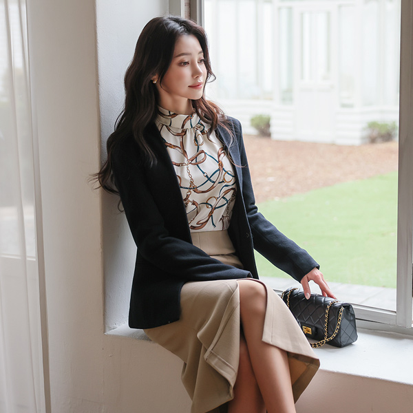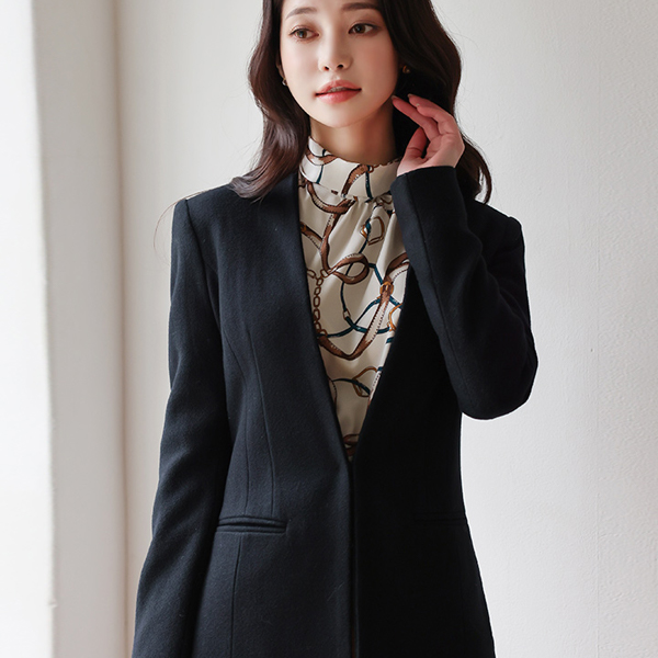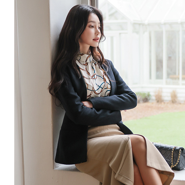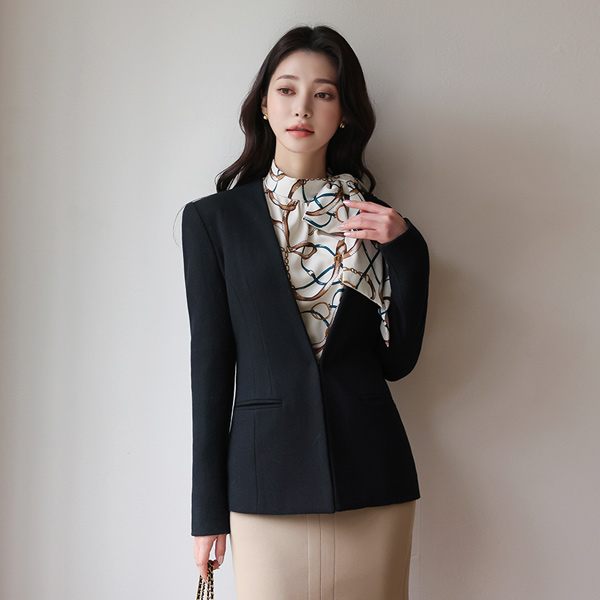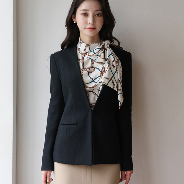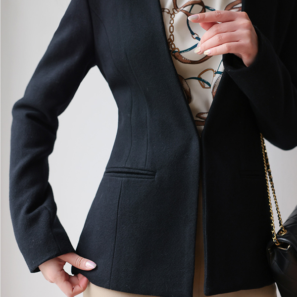 ノーカラー 切開ライン フォーマル ウール ジャケット
