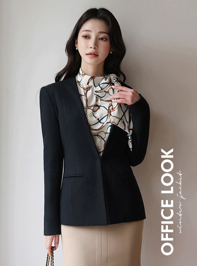 ノーカラー 切開ライン フォーマル ウール ジャケット