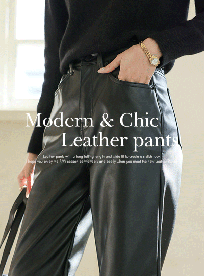 モダン シック ワイド 起毛裏地 レザーパンツ