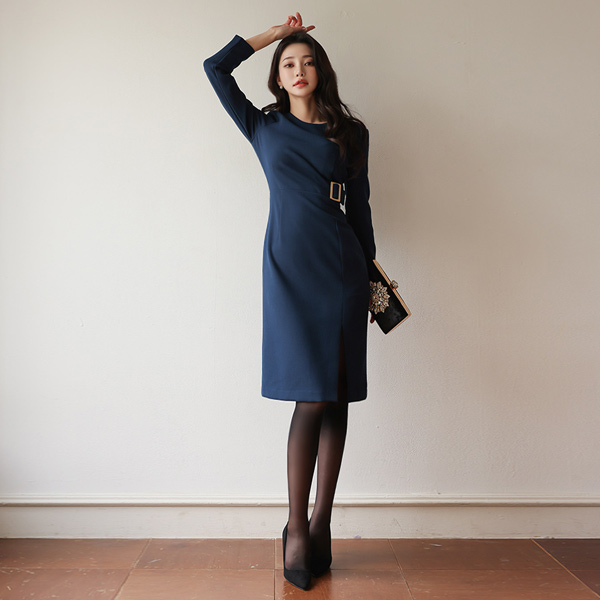 スクエア バックル サイド スリット ワンピース
