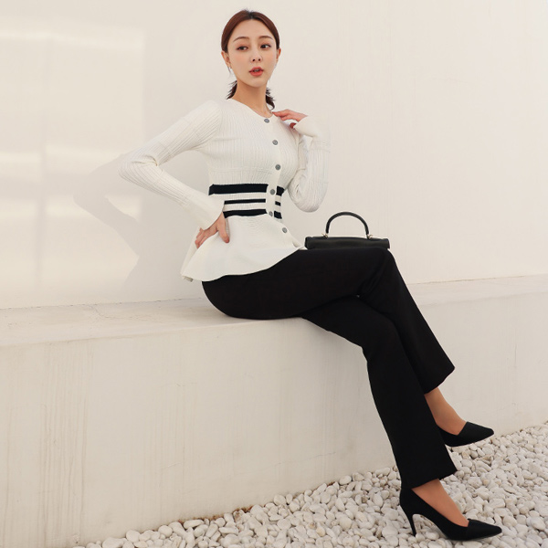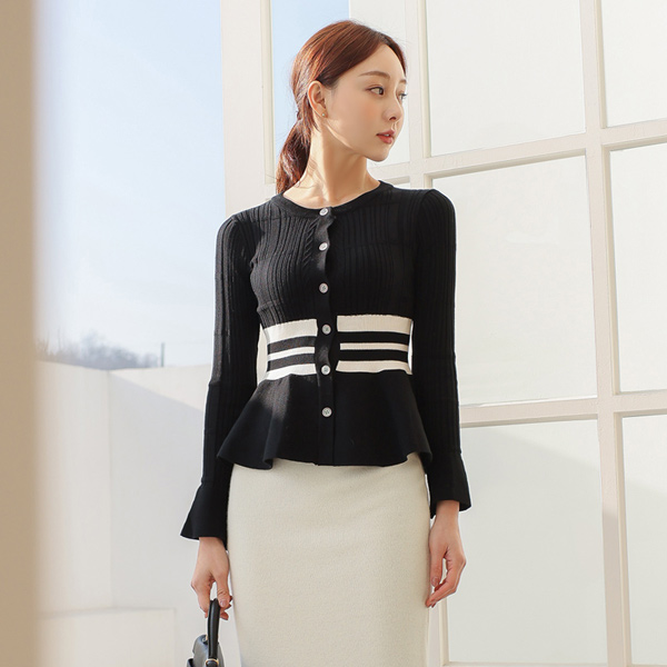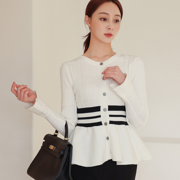 コール天 ストライプ ペプラム カーディガン