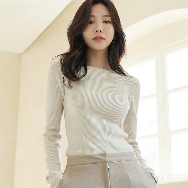 ゴールドリング 袖 ボタン スリム コール天 ニット