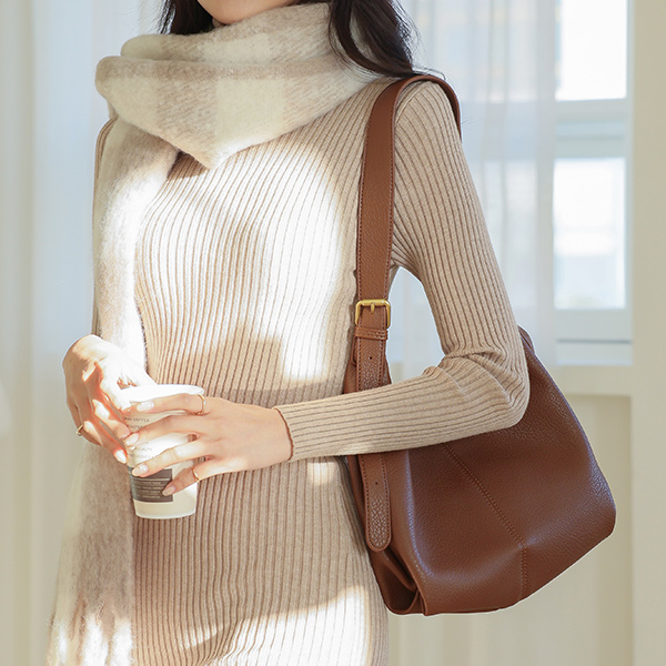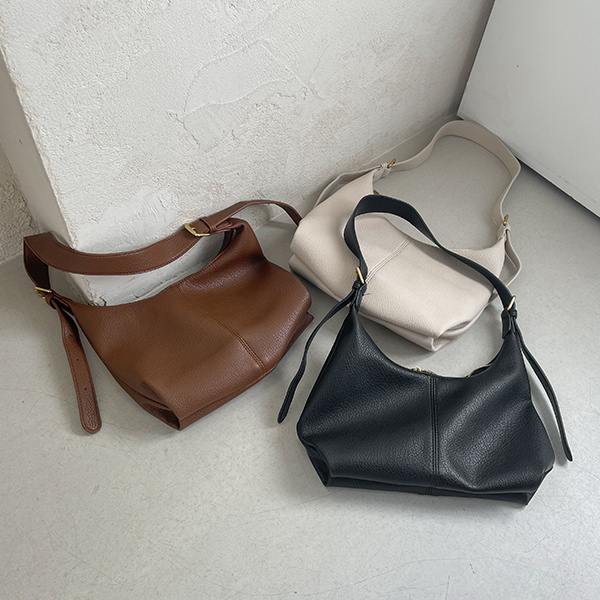 ゴールド ツーバックル カーフスキン ホーボーバッグ