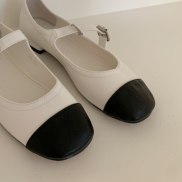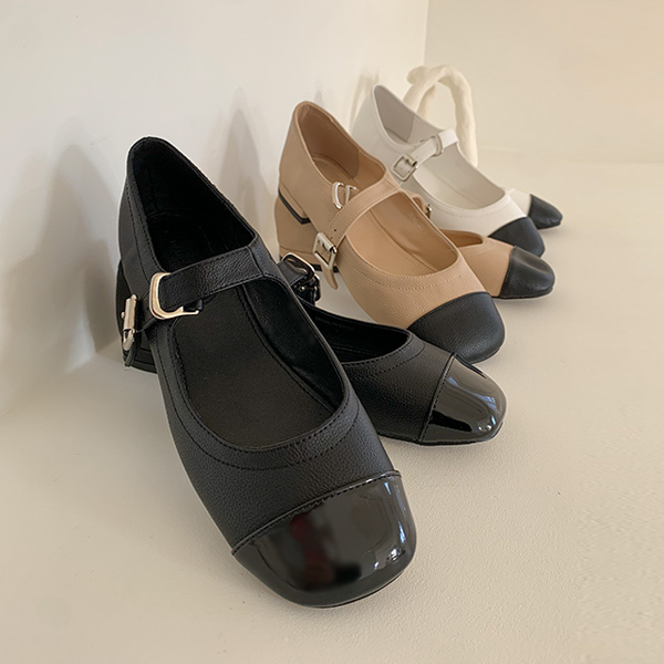 メリージェーン スクエア バックル 配色 フラットシューズ