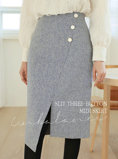 アンバランス 切開 スリーボタン ELLE ミディ スカート