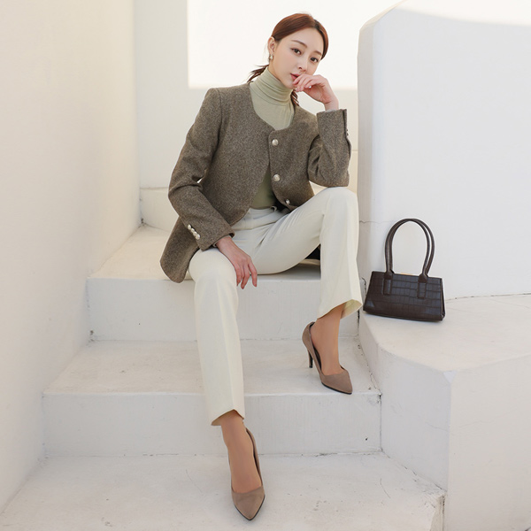 配色 ツイード ダブルボタン ウール ジャケット