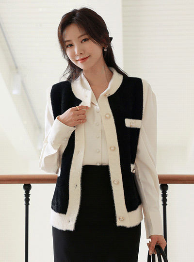 エレガンス 真珠 配色 チュール ベスト