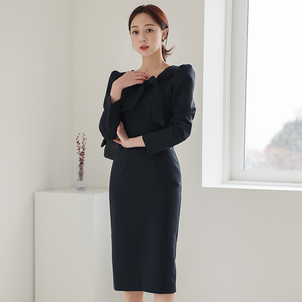 ラウンド アンバランス カラー リボン ワンピース
