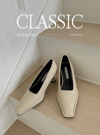 クラシック スクエア ミドル パンプスヒール