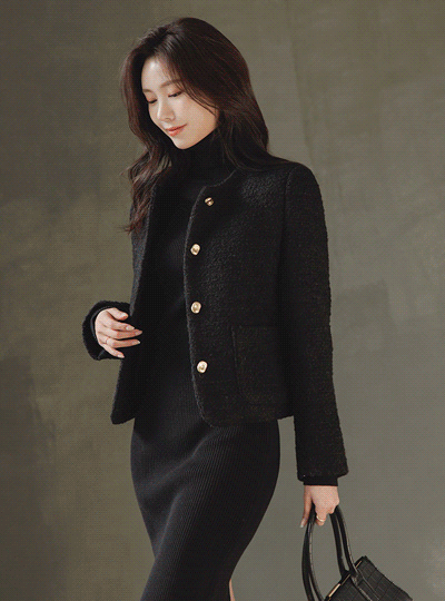 ラブリー ブークレ つや消しゴールド ウール ジャケット