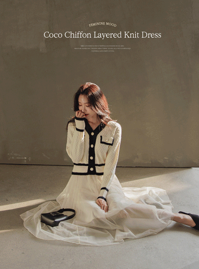 Coco シフォン レイヤード ニット ワンピース