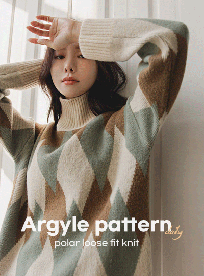 アーガイル パタン とっくりえり ルーズフィット ニット