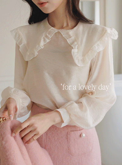 ロマンチック ODE ビッグカラー テンセル シースルー ブラウス