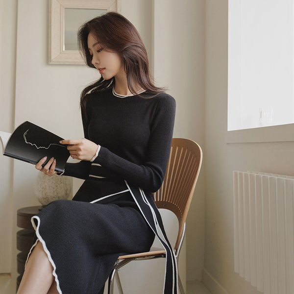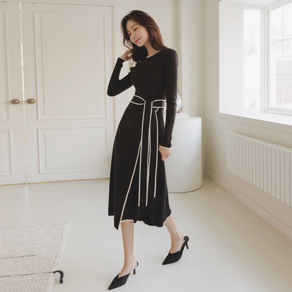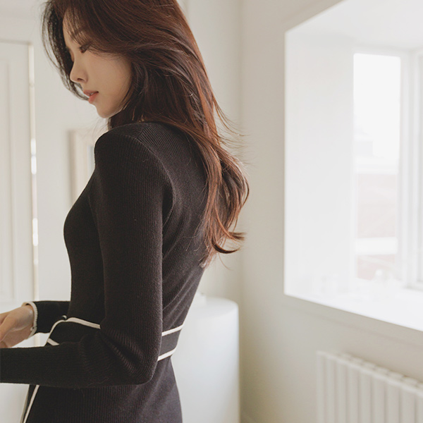 ライン ポイント ラップスタイル ニット ワンピース