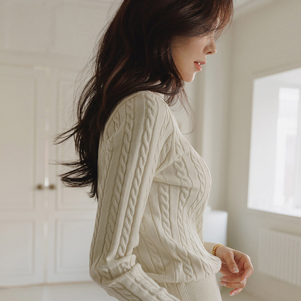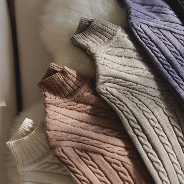 ケーブル 織った 半ハイウエスト とっくりえり ニット