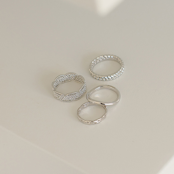 Silver ミニ チェーン レイヤード リング(4set)