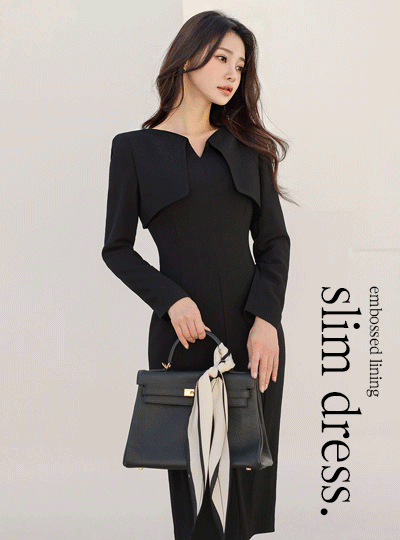 エンボス 裏地 スリム ワンピース