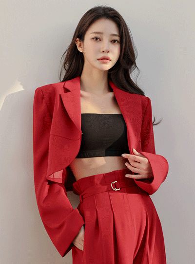 ユニーク ワンボタン クロップド ジャケット